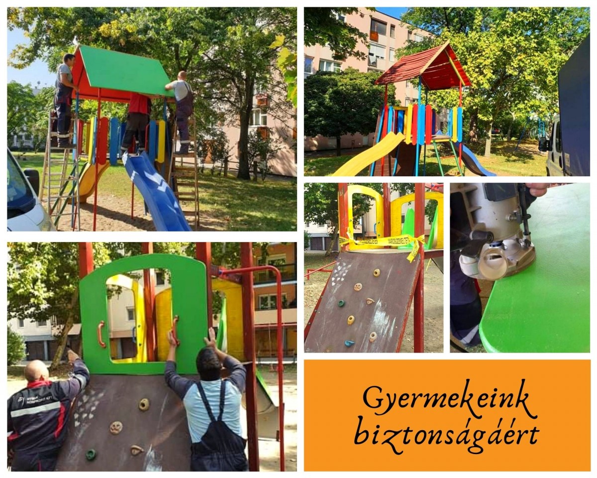 A Nyírvv Nonprofit Kft. munkatársai kijavítják/kicserélik a nyíregyházi játszóterek és kondiparkok sérült elemeit a gyerekek biztonsága érdekében.