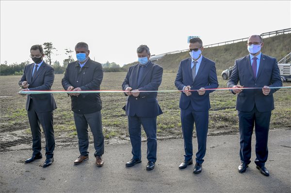 A képen: Papp László polgármester, Bodó Sándor, az Innovációs és Technológiai Minisztérium (ITM) foglalkoztatáspolitikáért felelős államtitkára, a Fidesz országgyűlési képviselője, Pósán László, a térség fideszes parlamenti képviselője, Nyiszter Tamás, a MÁV Zrt. beruházási vezérigazgató-helyettese és Kikina Artúr, a NIF Zrt. vasútfejlesztési igazgatója átvágja a nemzeti színű szalagot az Ebes és Debrecen közötti felújított vasútvonal ünnepélyes átadóján Debrecen közelében 2020. október 16-án. Környezetkímélő és biztonságos közlekedés jött létre a 15 milliárd forintos beruházás keretében felújított, Ebes és Debrecen közötti vasútvonal teljes átépítésével. MTI/Czeglédi Zsolt