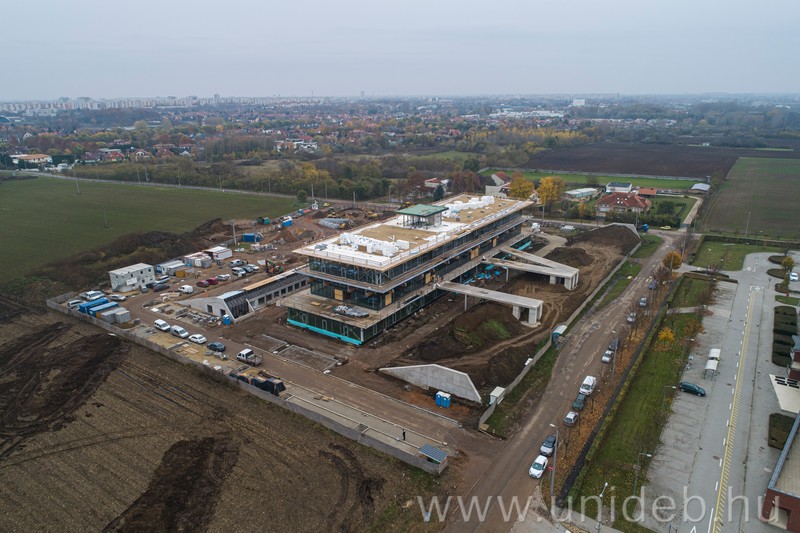 Már szerkezetkész a Debreceni Egyetem Innovációs Központja a Vezér úti ipari parkban. Az épület alapkövét június 9-én rakták le, a tervek szerint 2021 tavaszán adják át. Az innovációs központ több mint 5000 négyzetméteres, háromszintes épületet lesz.