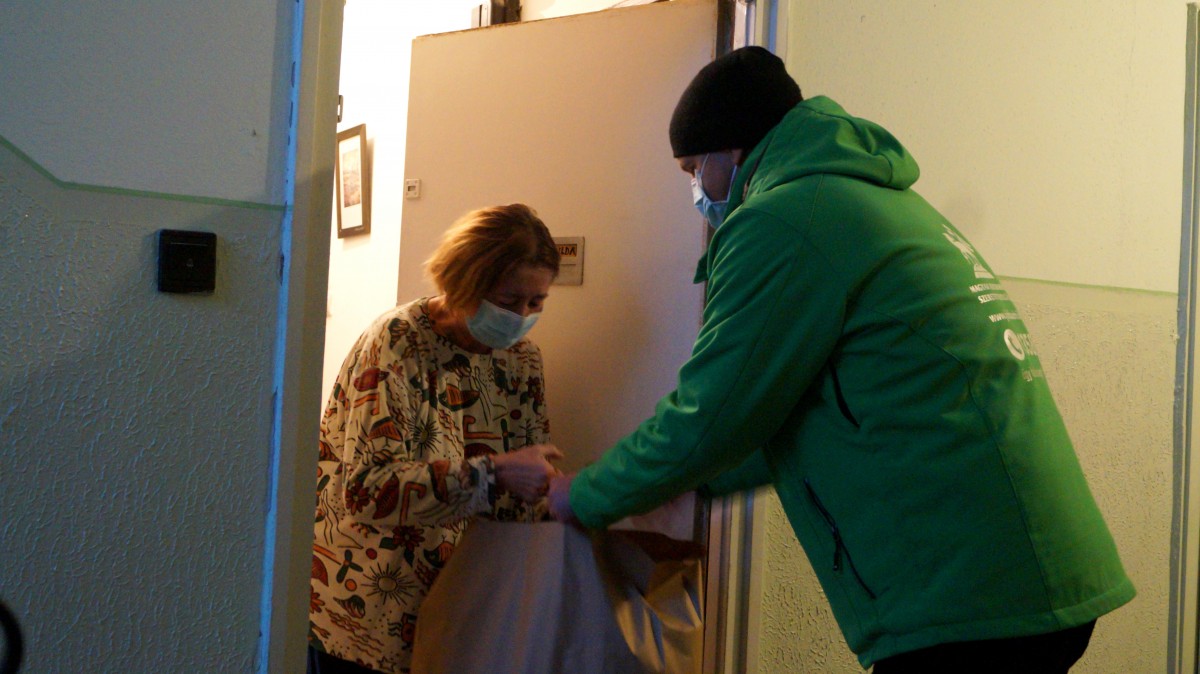 Tartós élelmiszereket és tisztálkodó szereket tartalmazó adománycsomagot, valamint csülkös bablevest is házhoz vitt a Magyar Református Szeretetszolgálat 150 segélykérő számára Debrecenben.