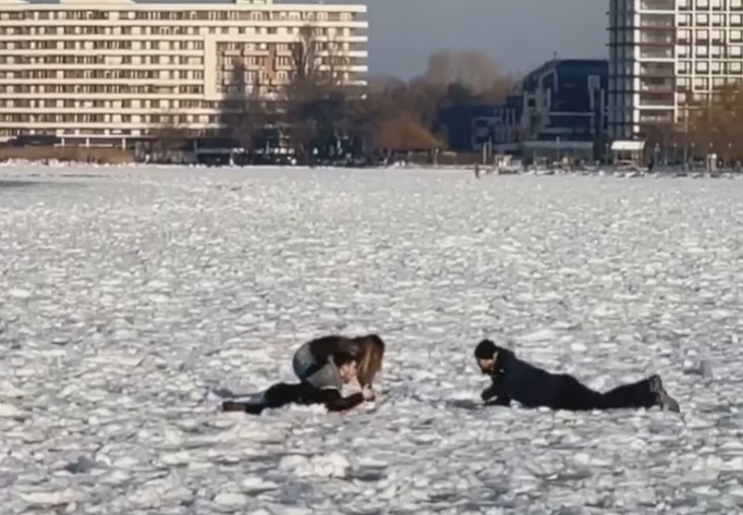 A Blikk azt írja, a hétvégén a Velencei-tó jegére 100-200 ember is ráment a hétvégén. A rendőrök hiába tessékelték ki őket, mikor az egyenruhások elmentek, folytatták a csúszkálást.