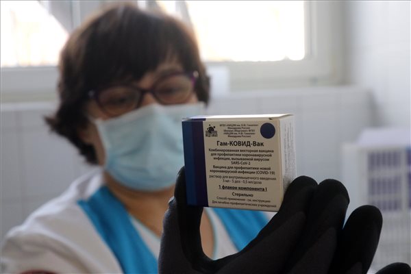 Kovács Zsuzsanna szakgyógyszerész mutatja a beérkezett orosz Szputnyik V koronavírus elleni vakcinát (hivatalos nevén Gam-COVID-Vac) a miskolci Borsod-Abaúj-Zemplén Megyei Központi Kórház és Egyetemi Oktatókórházban 2021. február 16-án.