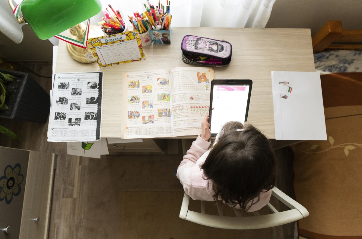 Tar Boglárka, a Zelk Zoltán Általános, Angol és Német Kéttannyelvű Iskola másodikos tanulója online matematikaórán vesz részt.
