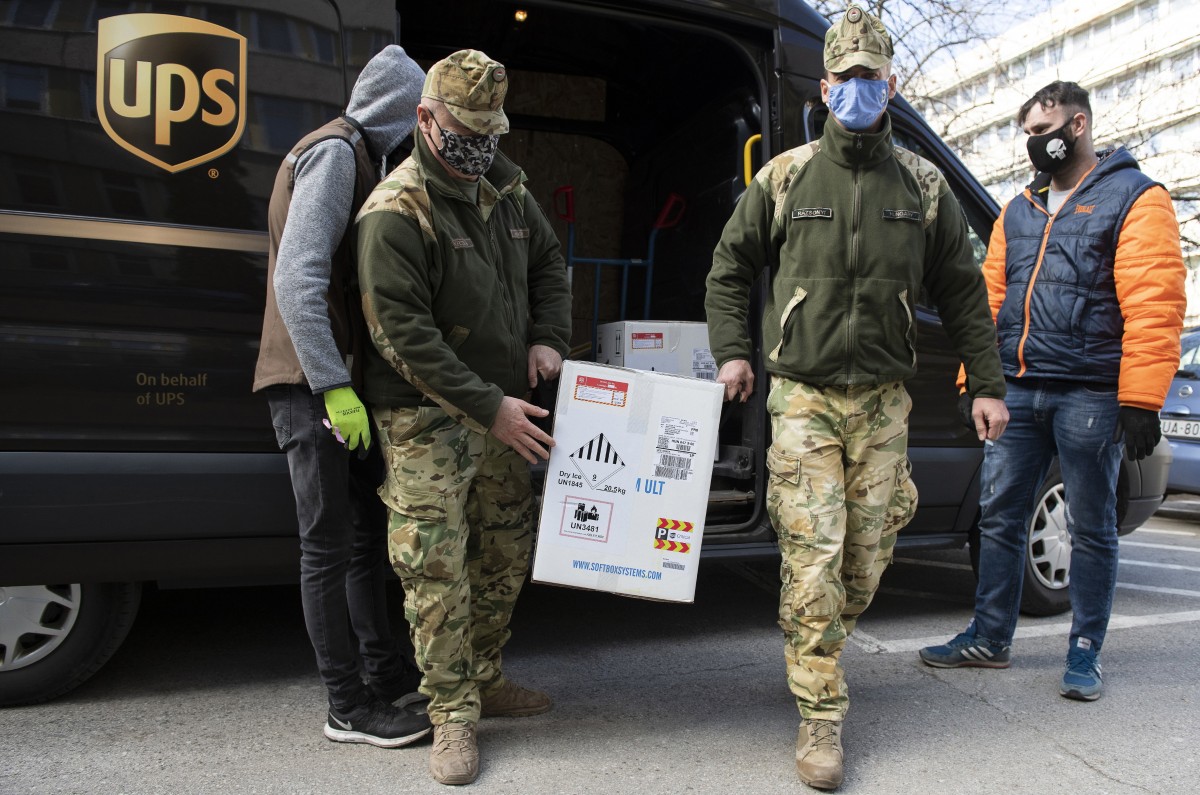 A Pfizer-BioNTech újonnan érkezett koronavírus elleni vakcináit tartalmazó dobozt katonák vitték a Jósa András Oktatókórházba.