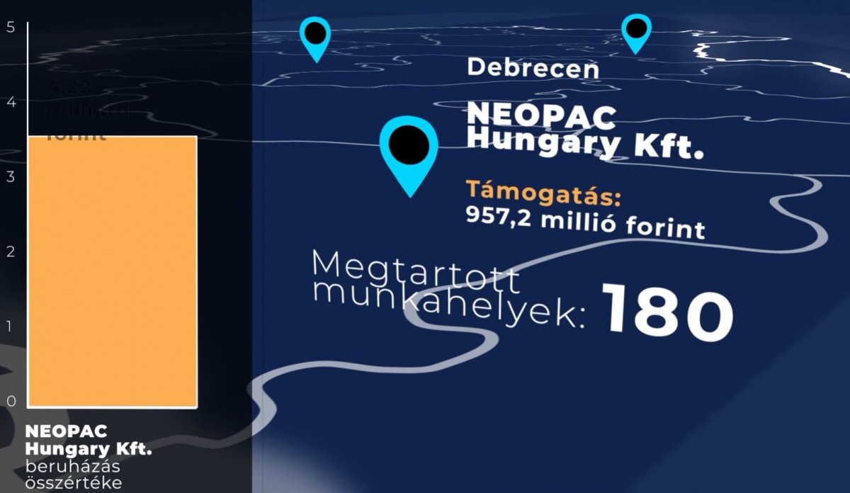 Három újabb beruházás valósult meg a járvány harmadik hulláma alatt, ezzel 800 munkahely megőrzése vált biztossá. A Neopac Hungary Kft. 4,2 milliárd forintból bővített Debrecenben, 180 munkahelyet védett meg.