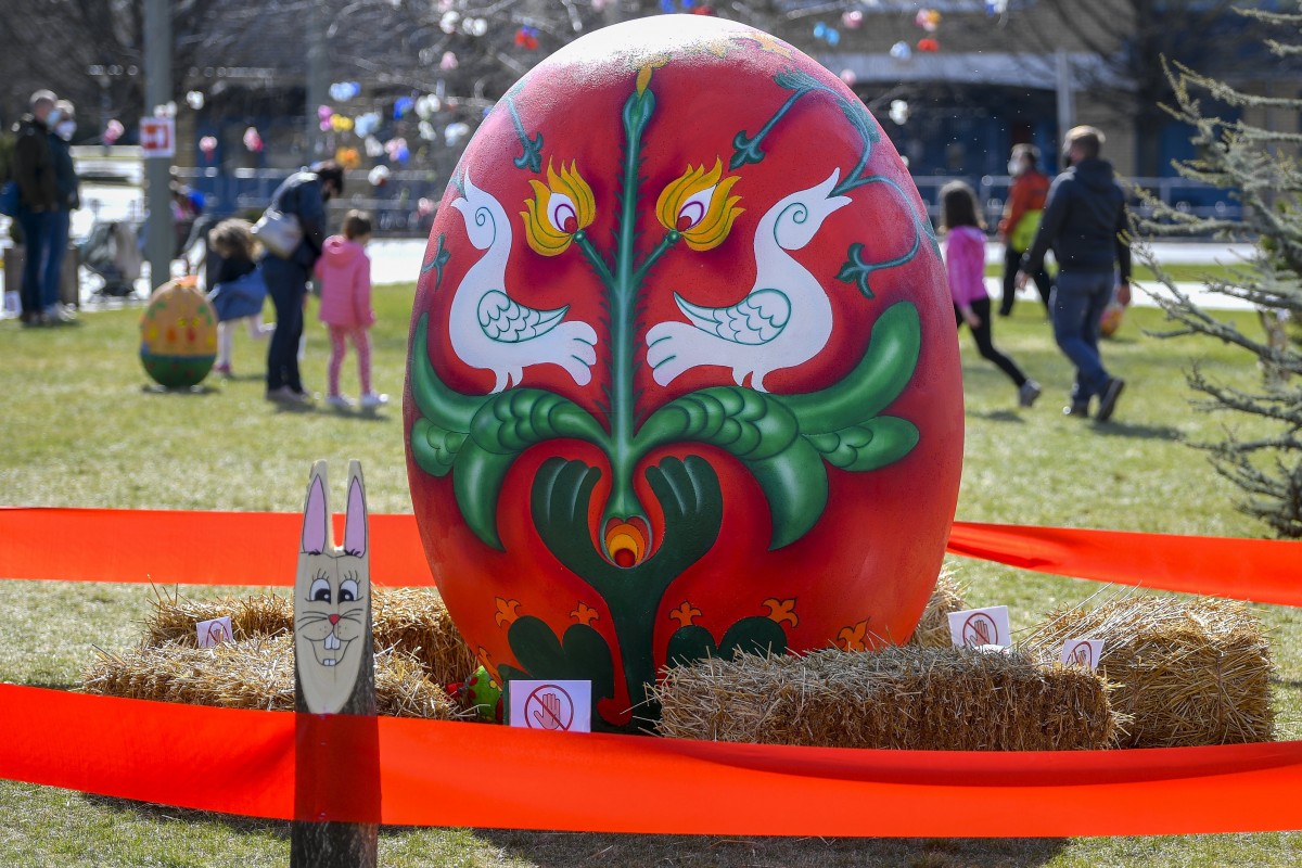 Tojásdíszek lógnak fák ágairól a hajdúszoboszlói húsvéti parkban 2021. március 28-án. Képzőművészek és művészeti iskolák oktatóinak segítségével készült el tíz darab nagyméretű tojás, a környező fákra pedig 1600 tojásdíszt került, amelyeket szülők, gyerekek, civil szervezetek és művészeti csoportok alkottak. MTI/Czeglédi ZsoltTojásdíszek lógnak fák ágairól a hajdúszoboszlói húsvéti parkban 2021. március 28-án. Képzőművészek és művészeti iskolák oktatóinak segítségével készült el tíz darab nagyméretű tojás, a környező fákra pedig 1600 tojásdíszt került, amelyeket szülők, gyerekek, civil szervezetek és művészeti csoportok alkottak. MTI/Czeglédi Zsolt