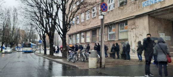 Hatalmas tömeg nyomorgott oltásra várakozva a debreceni “OTI” előtt – fotók