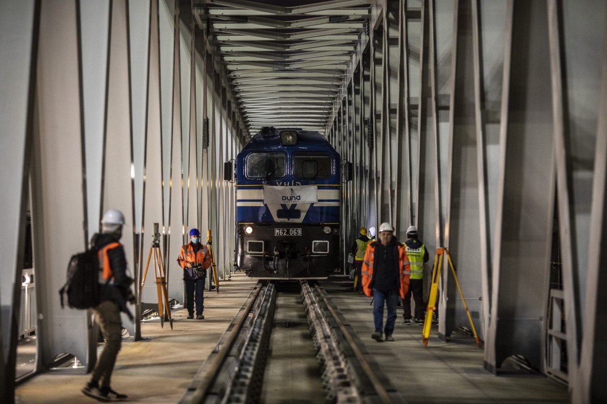 Hétfőn éjszaka a statikus próbaterhelés egy 17,5 méter hosszú, 116,3 tonna tömegű mozdonnyal, valamint 14 db, zúzottkővel megrakott, egyenként 12,74 méter hosszú, 70 tonna tömegű vagonnal történt. Ez összességében 1100 tonnát jelentett, melyet a vizsgálat során 16 különböző teherállásban helyeztek el és közben mérték a híd alakváltozásait.