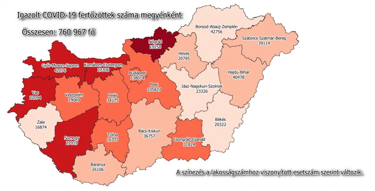Folyamatosan zajlik az oltás, a beoltottak száma 3 419 450 fő, közülük 1 453 300 fő már a második oltását is megkapta. 3 607 az új fertőzöttek száma, ezzel a járvány kezdete óta összesen 760 967 főre nőtt a beazonosított fertőzöttek száma.