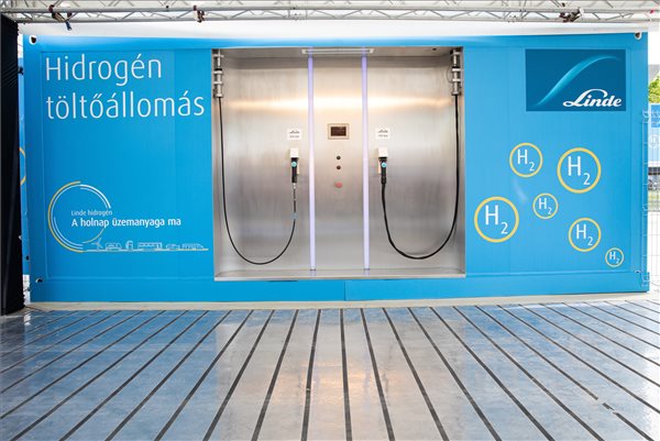 Átadták Magyarország első mobil hidrogén-töltőállomását csütörtökön Budapesten, a Linde Gáz Magyarország Zrt. telephelyén.