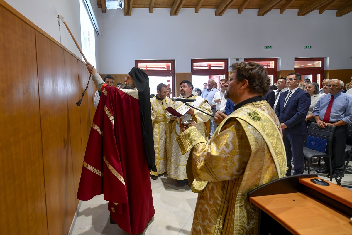 Fotó: Kocsis Fülöp, a hajdúdorogi görögkatolikus főegyházmegye érsek metropolitája (b) felszenteli a turisztikai látogatóközpontot Debrecenben az átadása napján, 2020. július 5-én. A látogatóközpontot a hajdúdorogi görögkatolikus főegyházmegye és a debreceni önkormányzat közösen építette. MTI/Czeglédi Zsolt