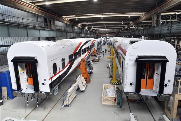 Az egyiptomi nemzeti vasúttársaságnak készülő vasúti személykocsik a Dunakeszi Járműjavítóban 2021. május 3-án. A magyar vasúti járműgyártás az eddigi legnagyobb megrendelését kapta az egyiptomi nemzeti vasúttársaságtól, ami a két ország közötti gazdasági együttműködés valaha volt legkomolyabb eredménye, valamint a magyar ipar történetének egyik legnagyobb exportügylete, hangsúlyozta idén február 23-án Szijjártó Péter külgazdasági és külügyminiszter az Alexandriában tartott sajtótájékoztatón. MTI/Máthé Zoltán