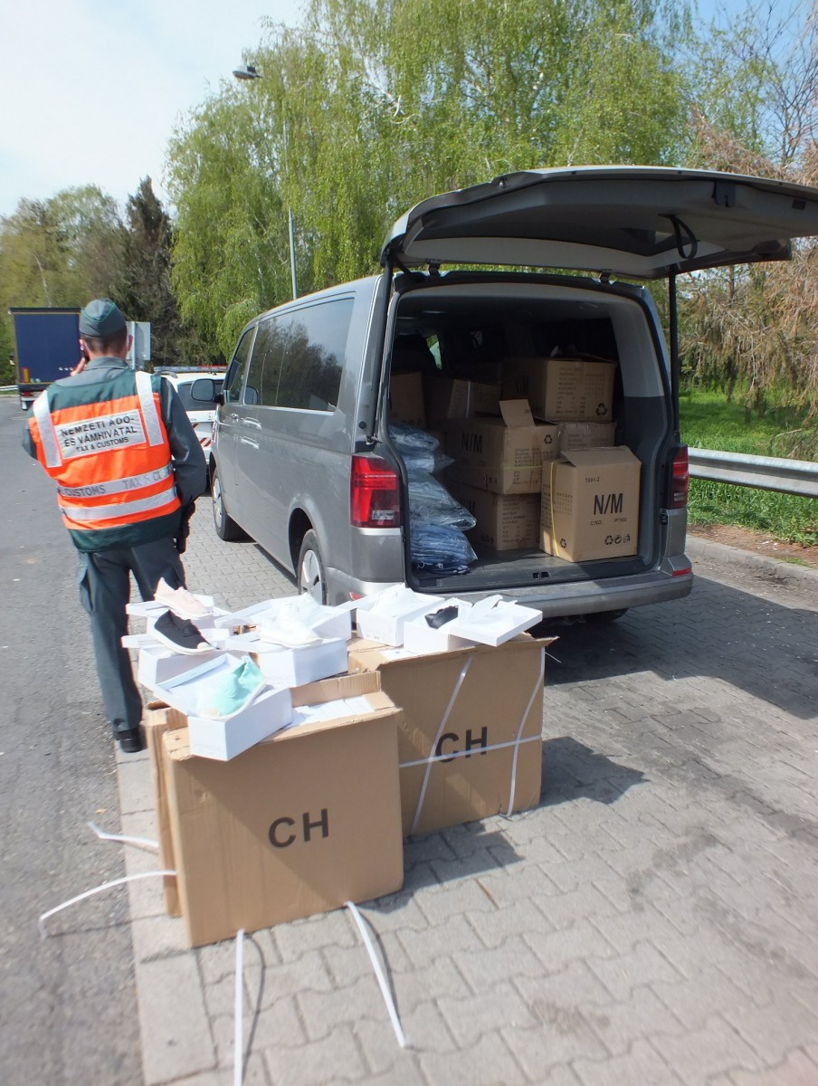 A Nemzeti Adó- és Vámhivatal (NAV) munkatársai csaknem négymillió forint értékben találtak hamis cipőket egy kisbuszban.