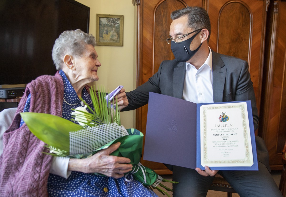 Vántus Tivadarné 1915-ben született Nagylétán, ott töltötte gyermekkorát. 27 évesen férjhez ment, akivel Munkácson éltek, itt született meg négy gyermekük. A család 1965-ban költözött Debrecenbe, azóta a városban él. Jelenleg ő Debrecen legidősebb és az ország második legidősebb embere. Papp László polgármester otthonában látogatta meg a szépkorú hölgyet, akinek oklevelet és virágot adott át a város nevében – olvasható az önkormányzat közleményében.