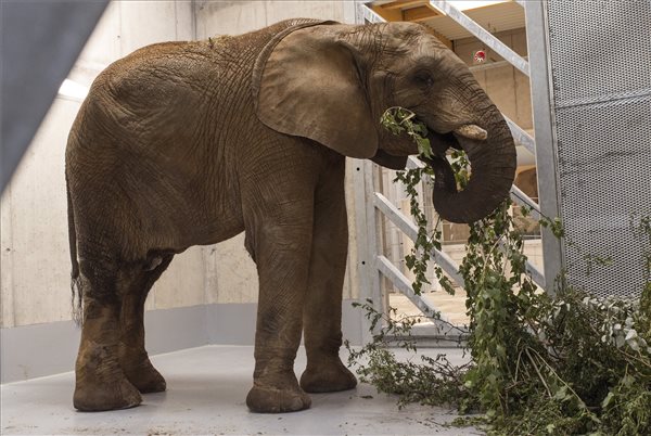 A győri Xantus János Állatkert első afrikai elefántja (Loxodonta africana) 2021. június 4-én. A Bou-Bou névre keresztelt, tizenöt éves elefántbika a franciaországi La Fléche állatkertjéből érkezett Győrbe.
