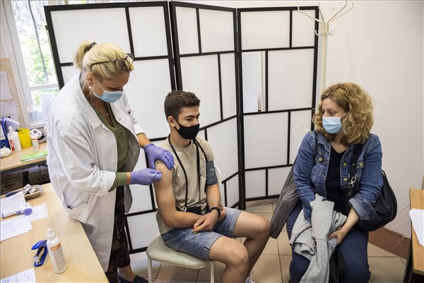 Pászthy Bea egyetemi docens beolt egy kiskorút a német-amerikai fejlesztésű Pfizer-BioNTech koronavírus elleni oltóanyag, a Comirnaty-vakcina első adagjával a Semmelweis Egyetem I. Sz. Gyermekgyógyászati Klinikáján június 15-én.