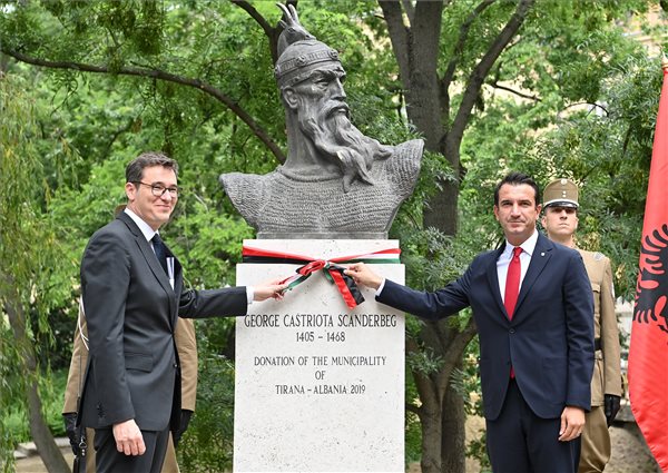 Ilir Meta albán és Áder János magyar köztársasági elnök jelenlétében felavatták Szkander bég (Kasztrióta György) albán fejedelem, nemzeti hős szobrát hétfőn Budapesten, a Városligetben.