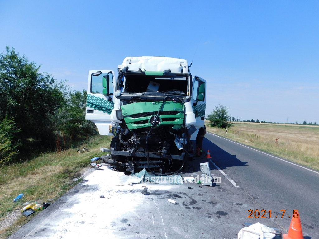 Összeütközött két nyerges vontató hétfő délelőtt a 4-es számú főúton, Karcagnál.