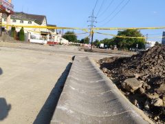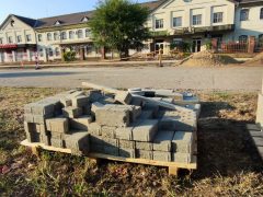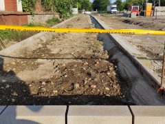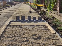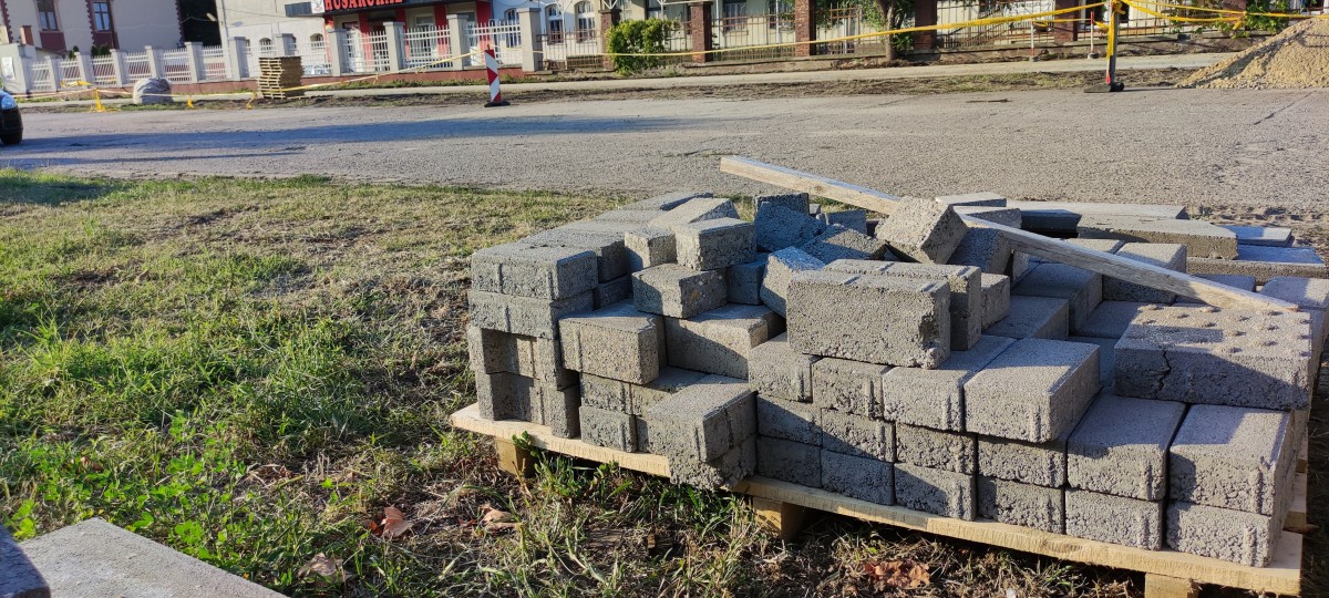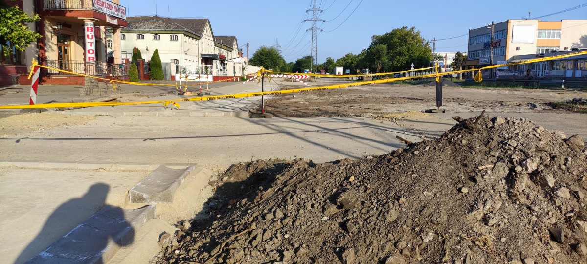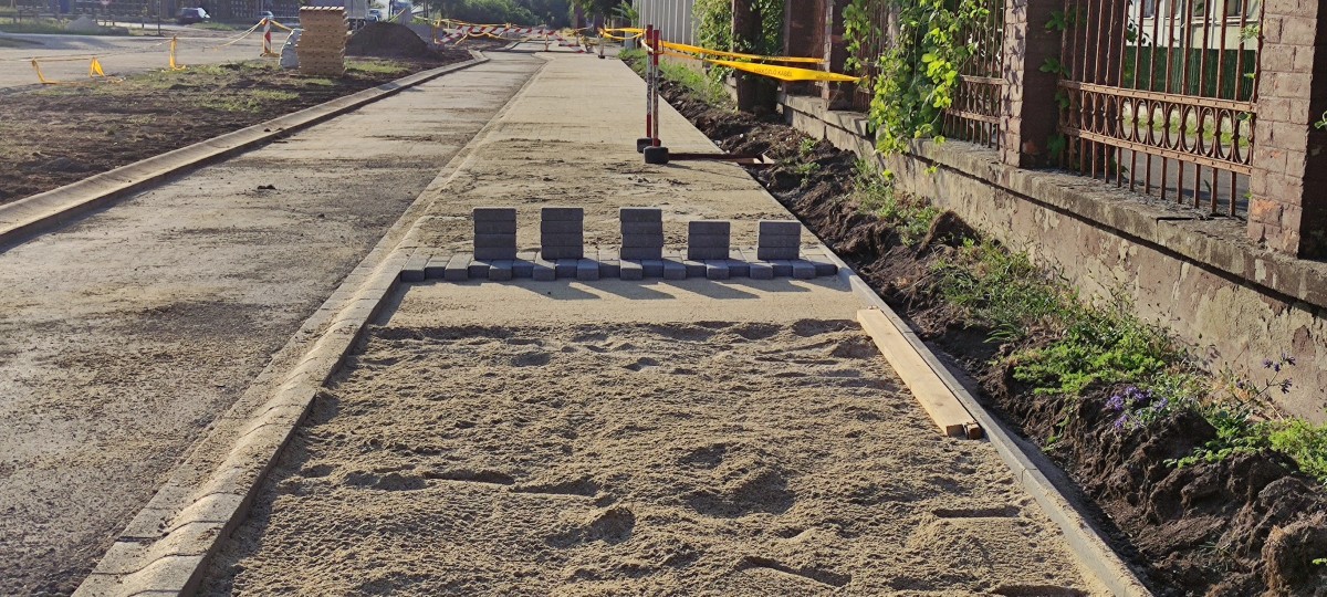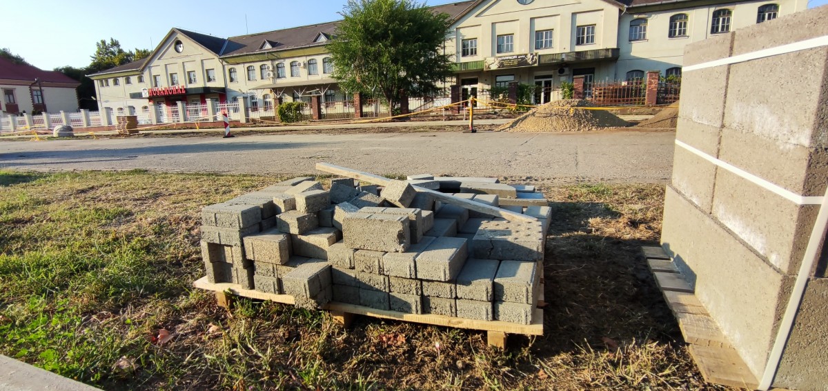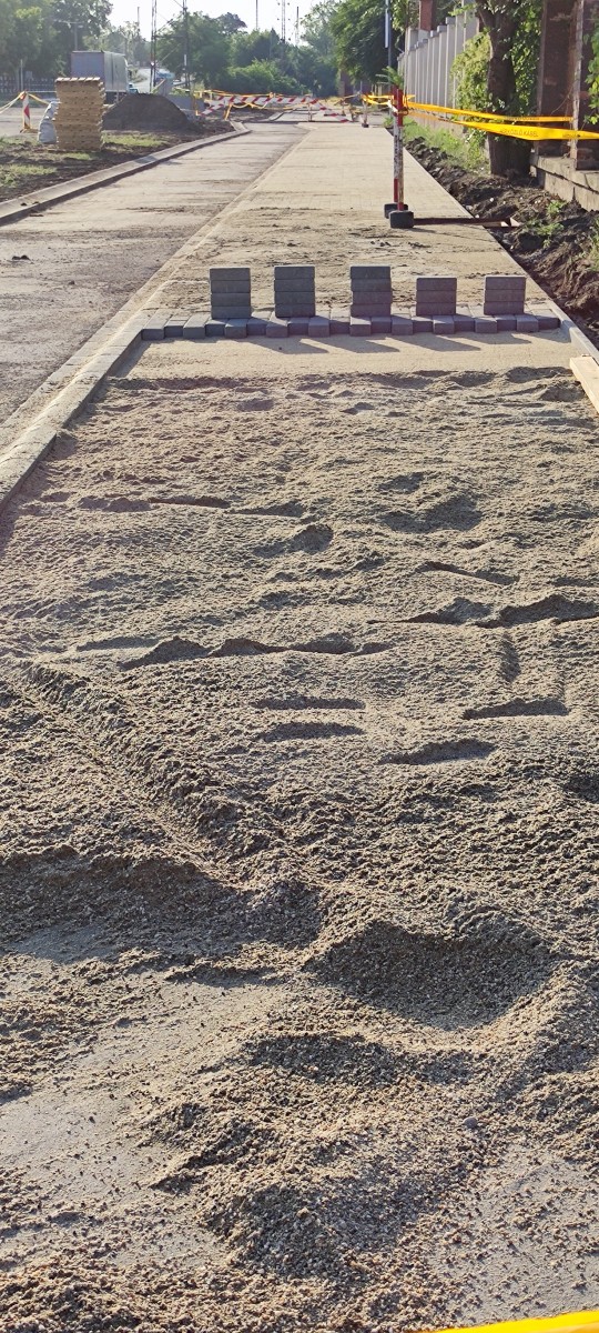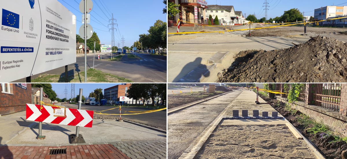 A földmunkák már előrehaladott állapotban vannak. Van, ahol már térkövet is leraktak, máshol a kerékpárút szegélye mutatja, hogy merre lehet majd tekerni.