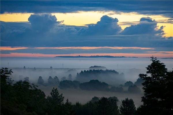 Köd a Principális-völgyben napfelkeltekor Zalaszentbalázs közeléből fotózva 2021. augusztus 24-én.