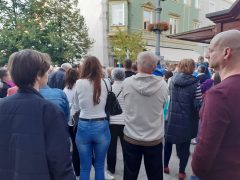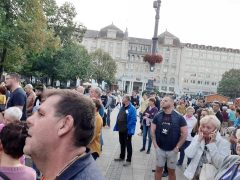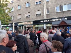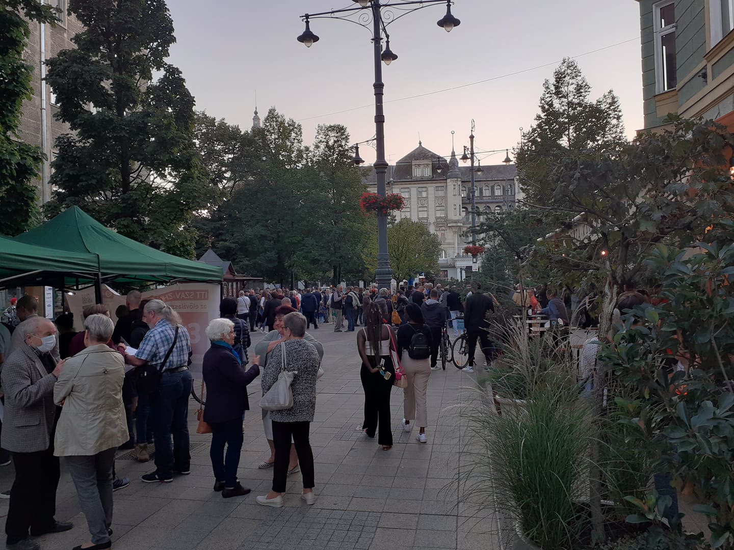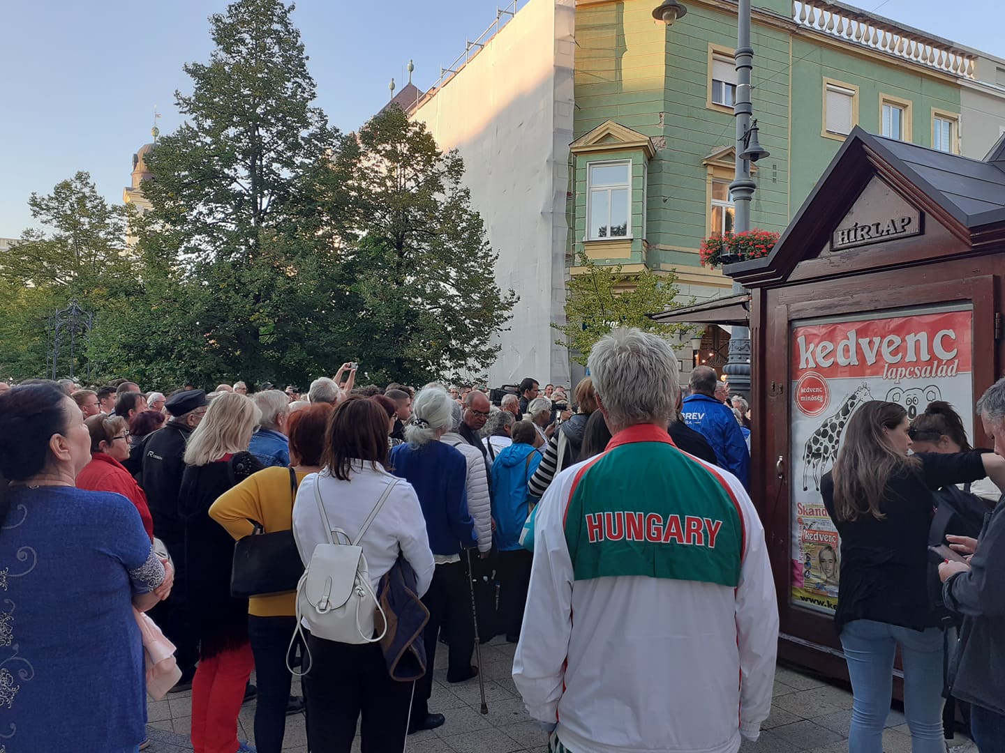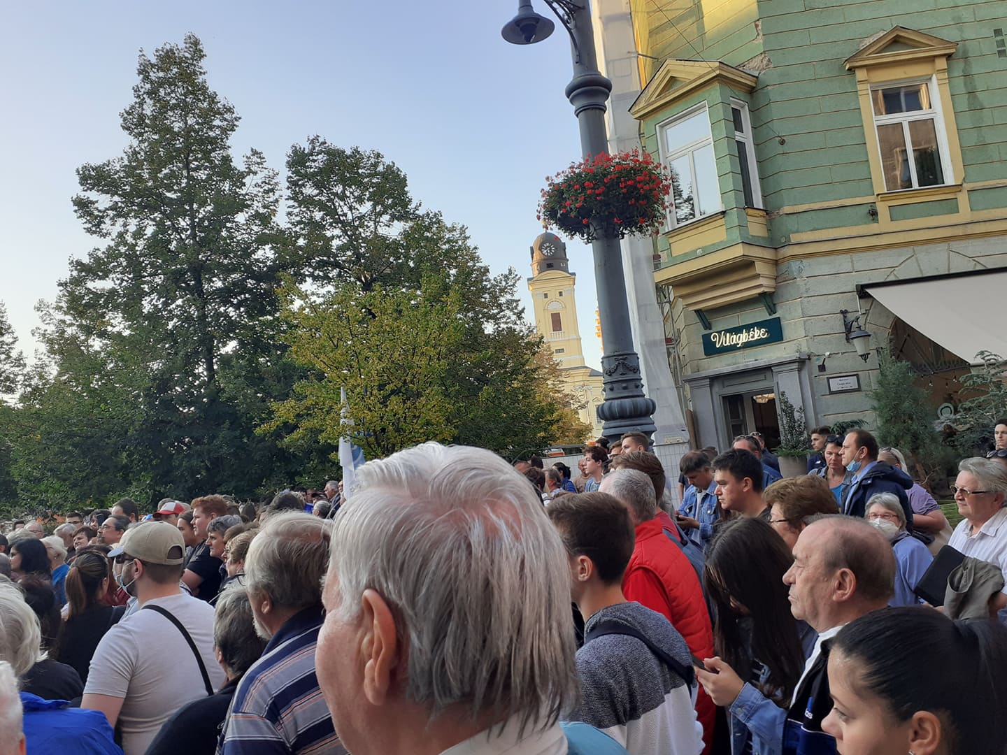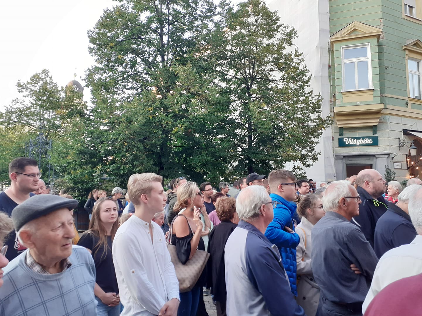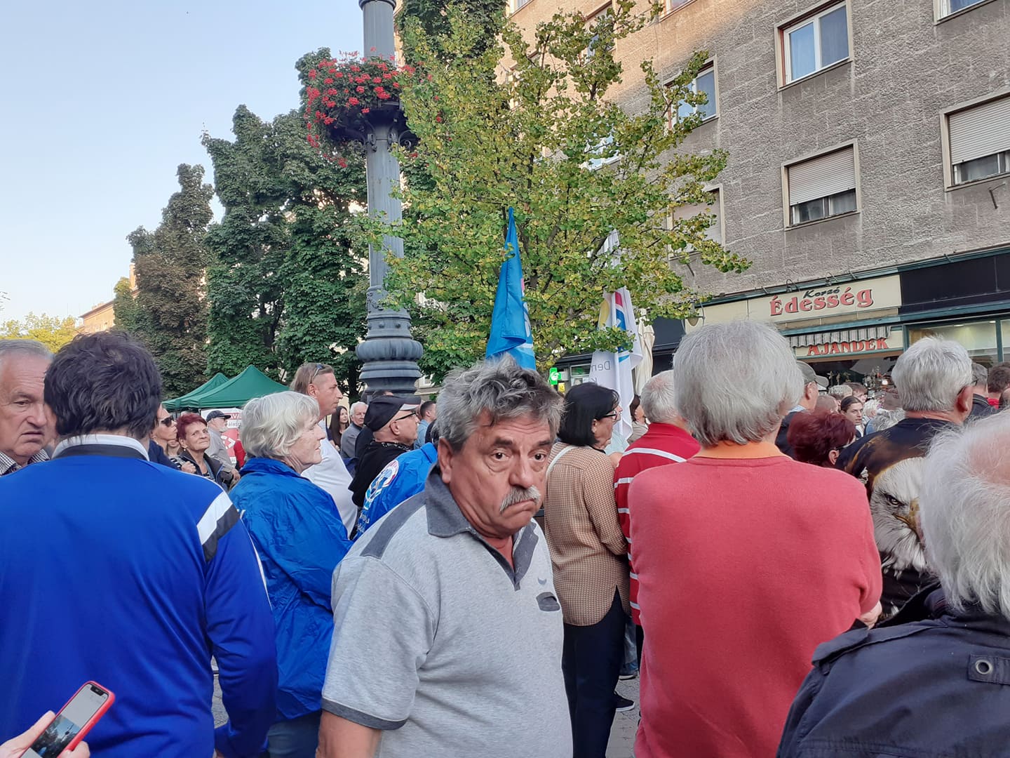 Gyurcsány Nyíregyházáról esett be a Kossuth tér – Csapó utca sarkára, és eléggé fáradtnak tűnt. Közel sem sziporkázott úgy, mint például a balmazújvárosi fórumán. Azért elmondta a szokásosakat: el kell zavarni Orbánékat, Debrecenről döntsenek a debreceniek, nem kell Fudan, nem kell Paks2, migránsok sem – ezt a nép gondolja így, de ő is tiszteletben tartja stb. A helyi DK-s képviselők is megjelentek, ők az esemény végén vegyültek a nép közé.