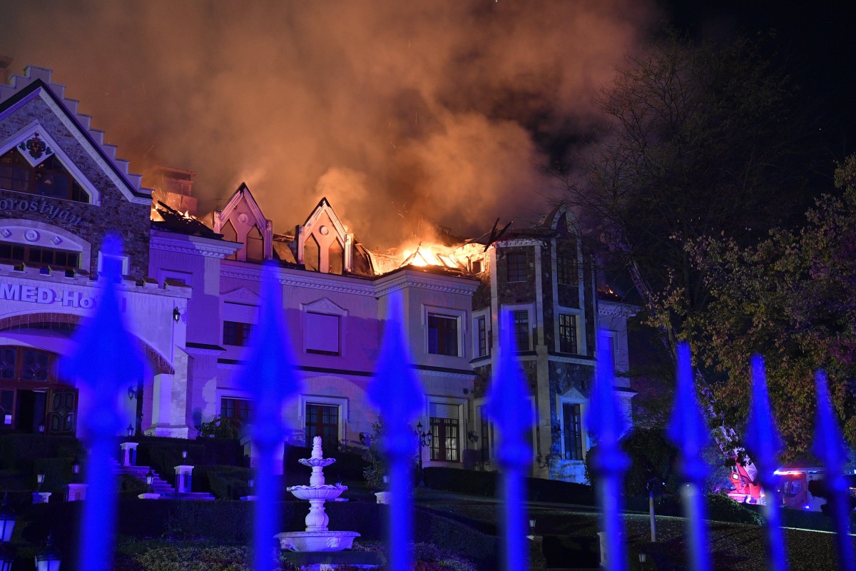 A tűzoltók megakadályozták a lángok továbbterjedését Nyíradony-Tamásipusztán, ahol kigyulladt és teljes terjedelmében égett egy szálloda tetőszerkezete. A nyíradonyi, a debreceni, a hajdúböszörményi, a nyírbátori, a hajdúszoboszlói, a nyíregyházi, a fehérgyarmati és a berettyóújfalui hivatásos, valamint a szakolyi önkormányzati egységek a katasztrófavédelmi műveleti szolgálat irányítása mellett oltják a tüzet. A rajok átvizsgálták az épületet, amelynek földszinti helyiségeiből nagy értékű orvosi felszereléseket mentettek ki.