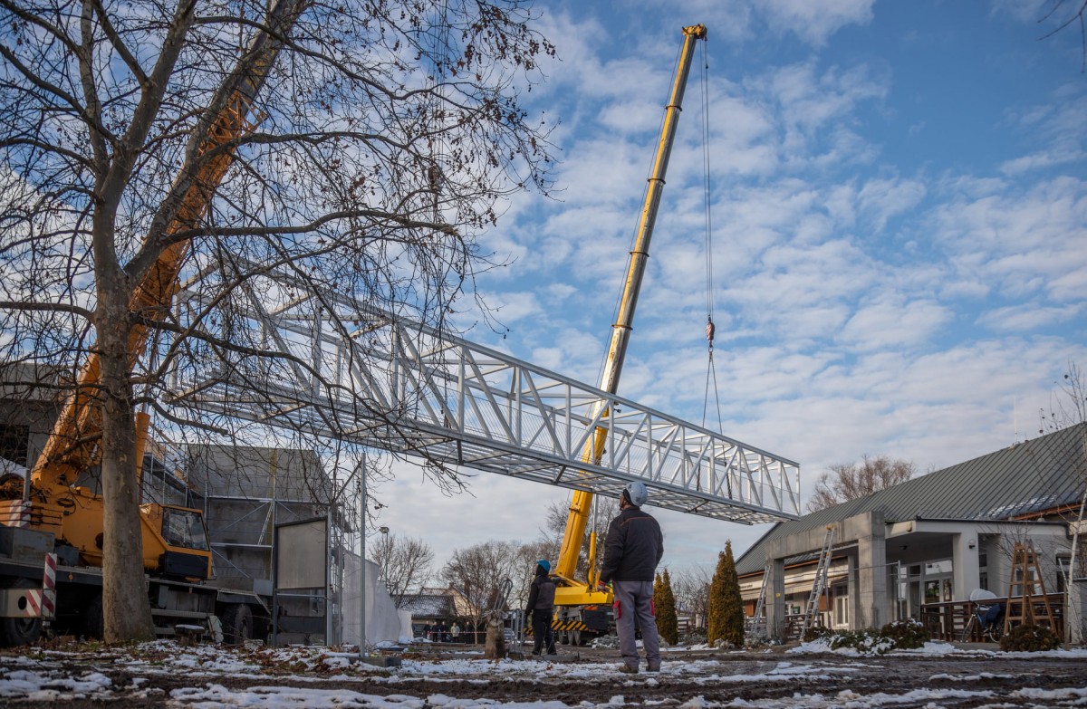 Beemelték kedden azt az összekötő hidat Hajdúböszörményben, mely a most épülő kétszintes Ökoturisztikai Látogatóközpontot köti össze a Ifjúsági Szállóval – tette közzé a város önkormányzata.