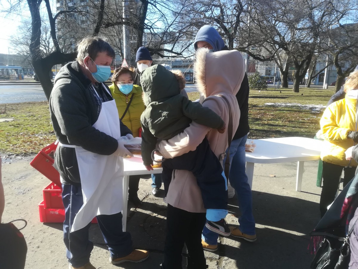 Az ételosztás végére mind a 150 adag étel gazdára talált, repetát sajnos nem tudtunk adni.