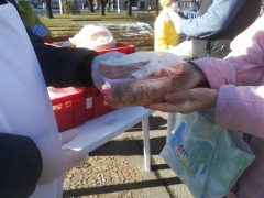 Ez a debreceni ételosztás kicsit más volt, mint az előzőek. Rövid beszéddel, egyperces csenddel, lehajtott fejjel emlékeztünk meg a napokban elhunyt barátunkról, ételosztó társunkról, Varga Ferencnéről, akit mindenki “ételosztó” Katikaként ismert. A megemlékezésen ott voltak Katika hozzátartozói, a gyászoló család tagjai is.