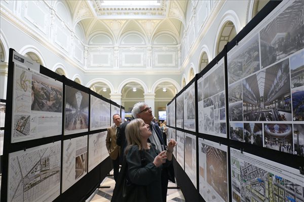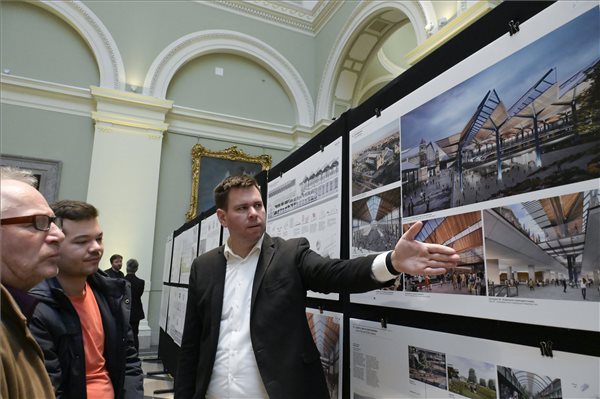 Vitézy Dávid, a Budapest Fejlesztési Központ vezérigazgatója a győztes pályaművet mutatja az új Nyugati pályaudvar tervpályázatának eredményhirdetése után a Szépművészeti Múzeumban 2021. március 26-án. Brit építésziroda, a Grimshaw Architects nyerte a tervpályázatot. Eszerint a felszínen, az Eiffel-csarnok mögött új, 13 vágányos vasúti csarnok épül, a föld alatt pedig 6 vágányos mélyállomás lesz. A pályaudvar elővárosi, távolsági és nemzetközi vonatokat fogad majd. Fotó: MTI