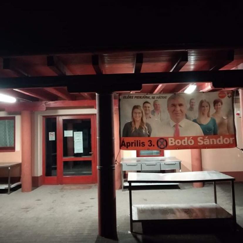 Választási plakátot, molinót helyeztek ki a fideszes Bodó Sándor emberei a földesi népkonyhán – állapította meg Kiss László, az ellenzéki összefogás körzeti jelöltje.