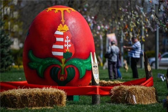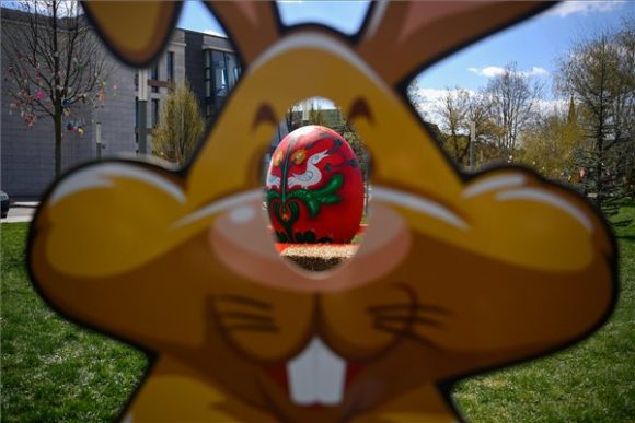 Dekoráció egy fán a hajdúszoboszlói húsvéti parkban 2022. április 12-én. A parkot képzőművészek, valamint művészeti iskolák oktatói és diákjai díszítették fel a közelgő ünnepre.