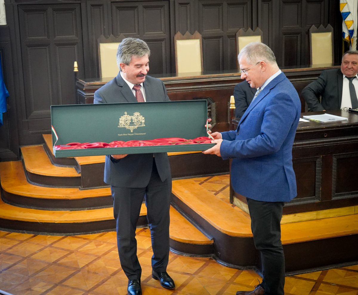 Az ülés elején Pajna Zoltán, a Hajdú-Bihar Megyei Közgyűlés elnöke Bocskai-szablyát nyújtott át Kósa Lajos és Dr. Pósán László megválasztott országgyűlési képviselőknek.