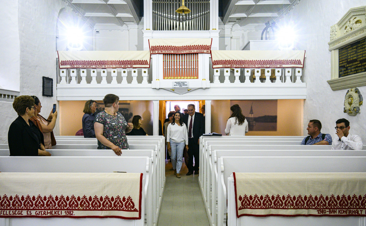 Novák Katalin köztársasági elnök és Cseri Miklós főigazgató a szentendrei Szabadtéri Néprajzi Múzeum Erdély épületegyüttesének első kiállítási egysége ünnepélyes megnyitóján 2022. május 19-én. MTI/Szigetváry Zsolt