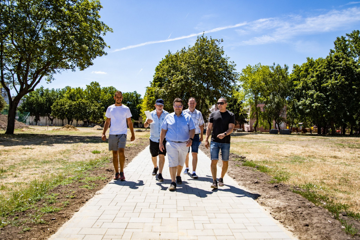 A politikus azt is megtudta, hogy az Angyalföld téri kitaposás térkövezése befejeződött, a pihenő rész kialakítása is jó ütemben halad. A Kishegyesi úti parkoló a terveknek megfelelő ütemben halad, újabb szakaszon indult el a munka. A merőleges sétány kivitelezése hamarosan megindul.