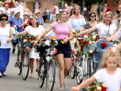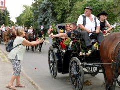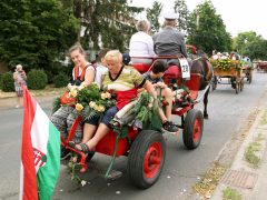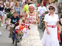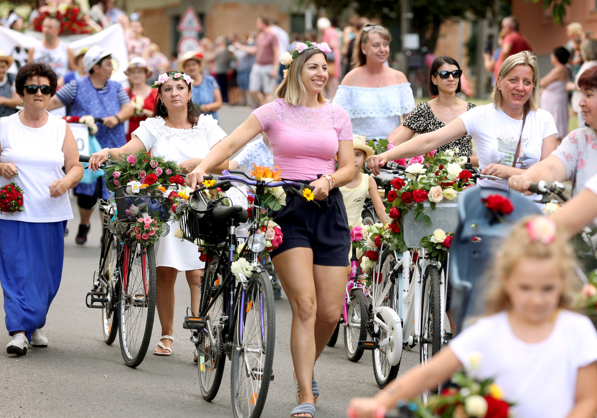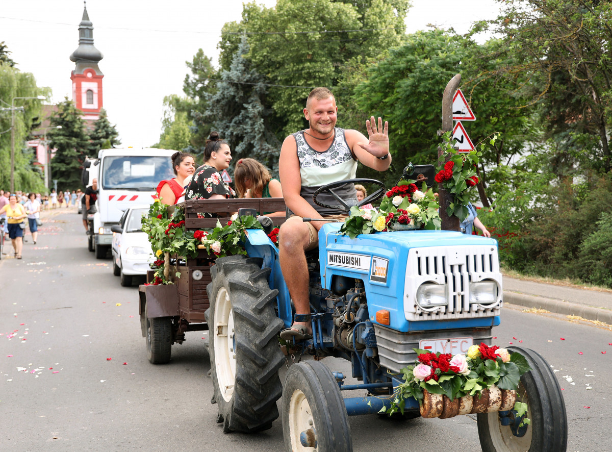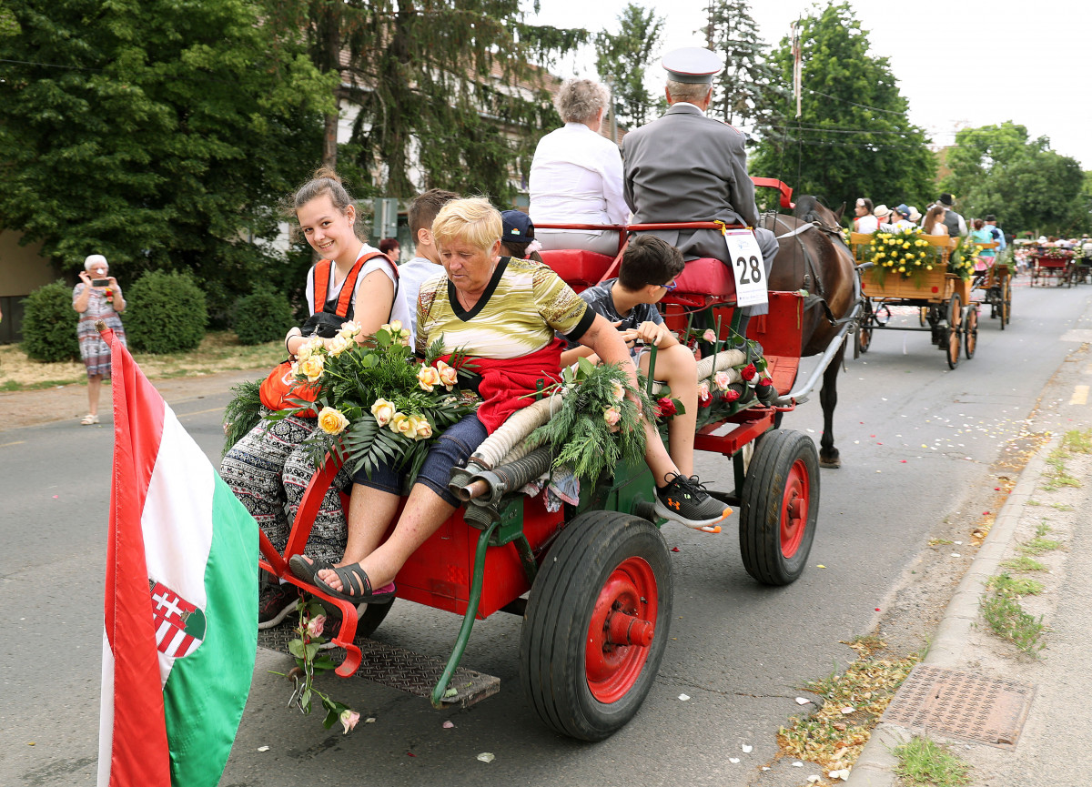 A leglátványosabb esemény a szombati felvonulás volt, amelyen csaknem hetven rózsákkal feldíszített lovaskocsi, fiáker, gépkocsi, veterán autó, traktor és más jármű, kisebb-nagyobb csoport vonult fel. A menetben résztvevők a hat kilométeres út során sok ezernyi szál rózsát osztottak szét a nézők között, a település és a járművek díszítéséhez is több ezer szál virágot használtak föl.