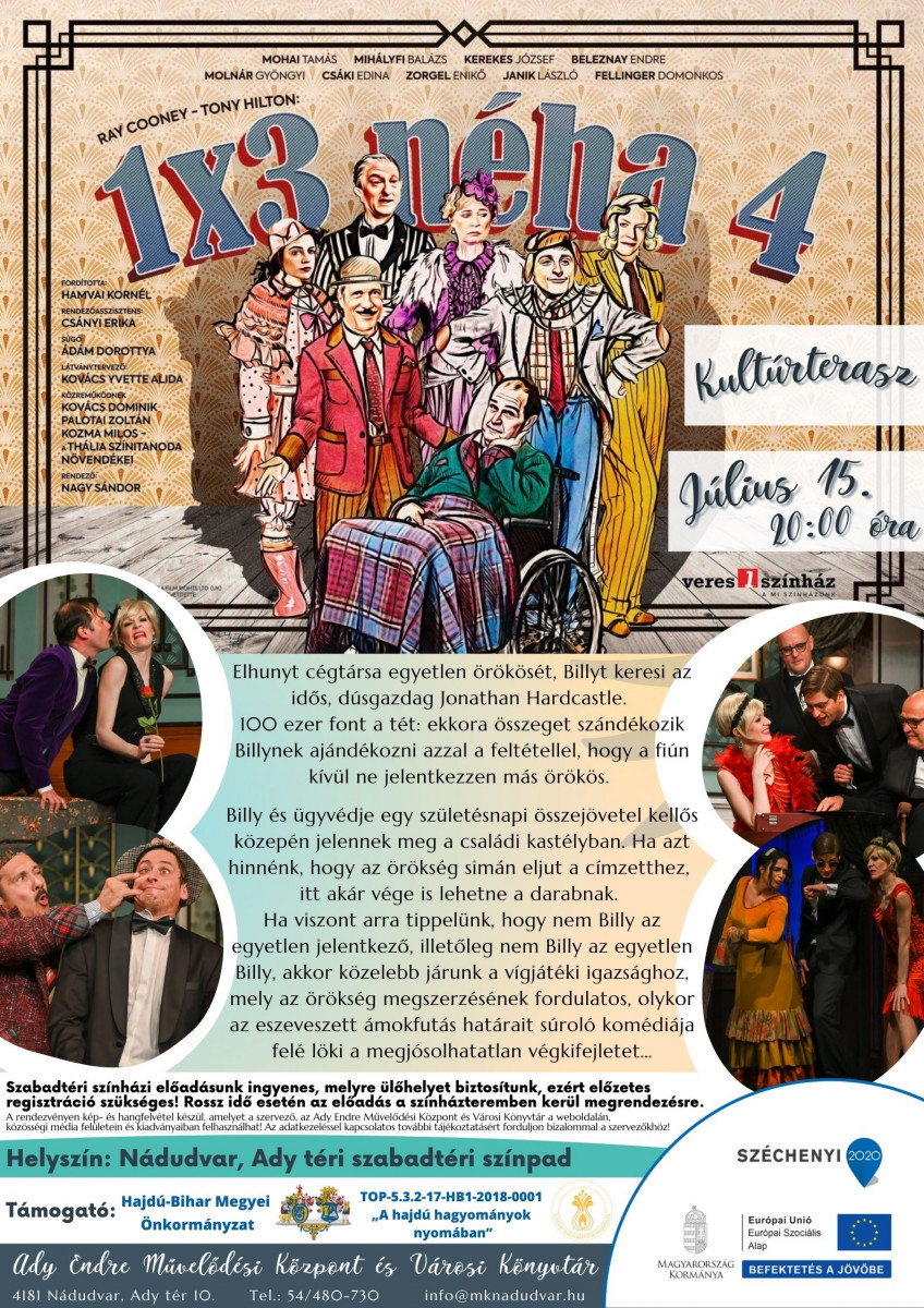 Az 1X3 néha 4 című színdarabot láthatják a nádudvariak a Veres 1 Színház társulata előadásában.