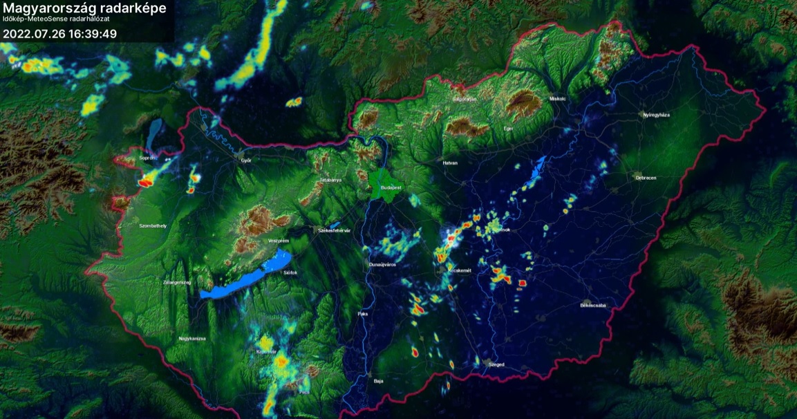 Az Időkép délutáni radarképe ennél egy fokkal kedvezőbb képet mutatott: a mostanában a Tisza vonalánál rendre elhaló zápor- és zivatargócok erősödni látszottak, és már “csak” a Hortobágy szárító hatását kell(enne) túlélniük.