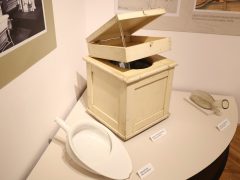 Kiderül a tárlaton az is, hogy a mobil vécék elődje a 18. században Franciaországban, a Napkirály udvarában jelent meg. Egy jezsuita szónok prédikációi annyira lehengerlőek voltak, hogy a közönség nem akart kimenni a toalettre sem, nehogy lemaradjanak valamiről. A legenda szerint ezért a hölgyek szószos tálakat vittek magukkal és az előadás alatt ezt használták folyó ügyeik elintézésére.
