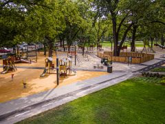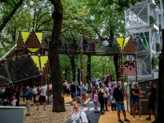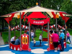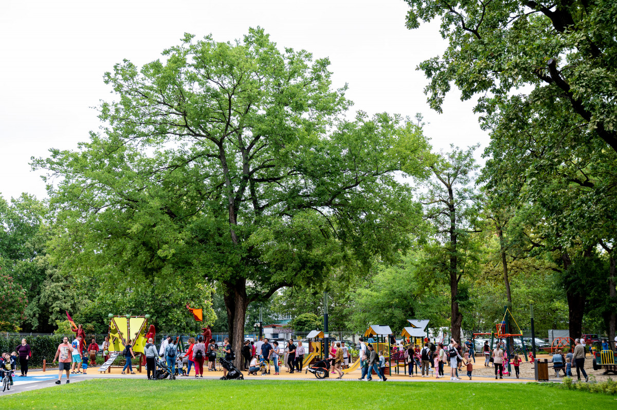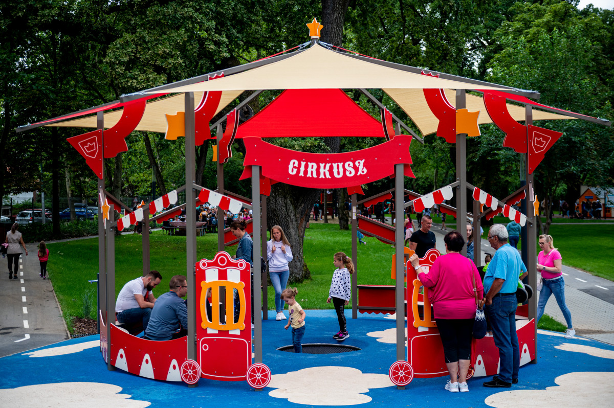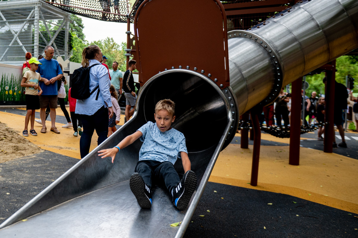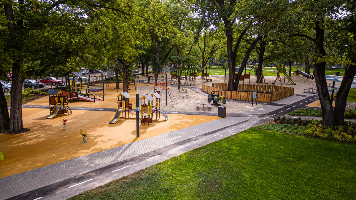 A város legnagyobb játszóterének átépítése 2021 szeptemberében kezdődött. A korábbinál mintegy kétszer nagyobb, 58 ezer négyzetméteres területen 78 darab új, vagy korábban itt lévő és felújított játék áll rendelkezésre, közte a korábban is meglévő akadálymentes játszóeszköz, valamint egy új akadálymentes hinta. Ezen felül számolható még a park leglátványosabb eleme, az élménytorony, ami óriáscsúszdával és a fák lombjai között húzódó akadálypályával nyújt kihívásokat a nagyobb gyerekeknek.