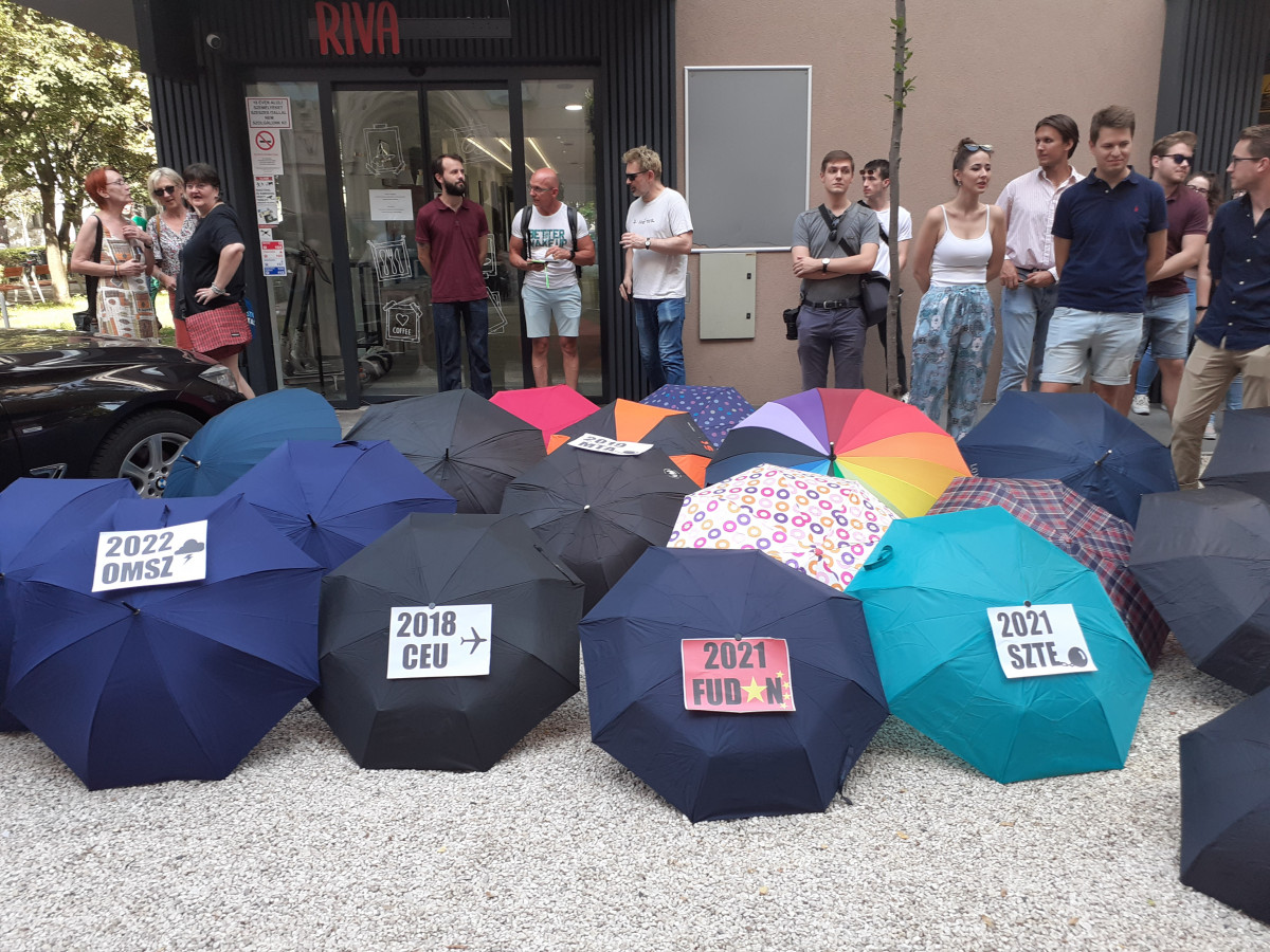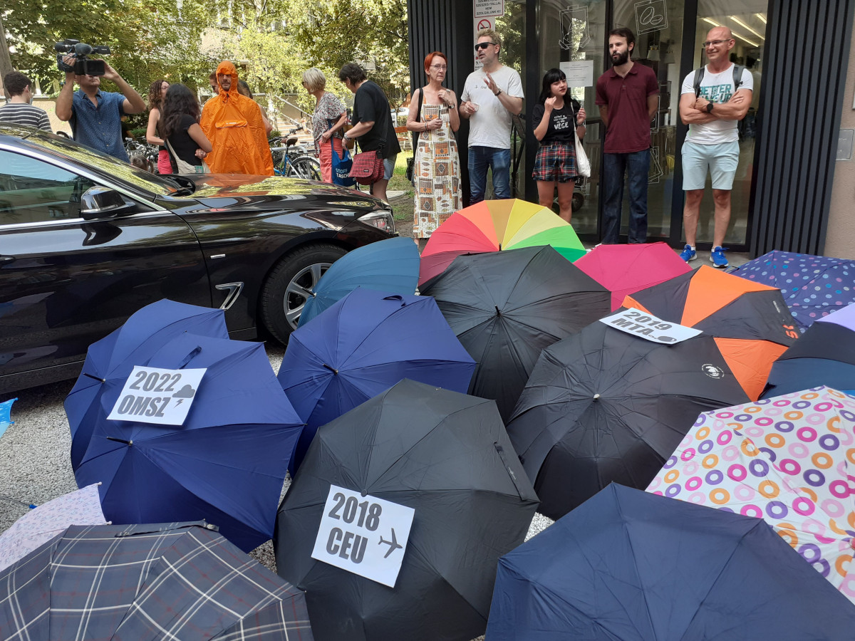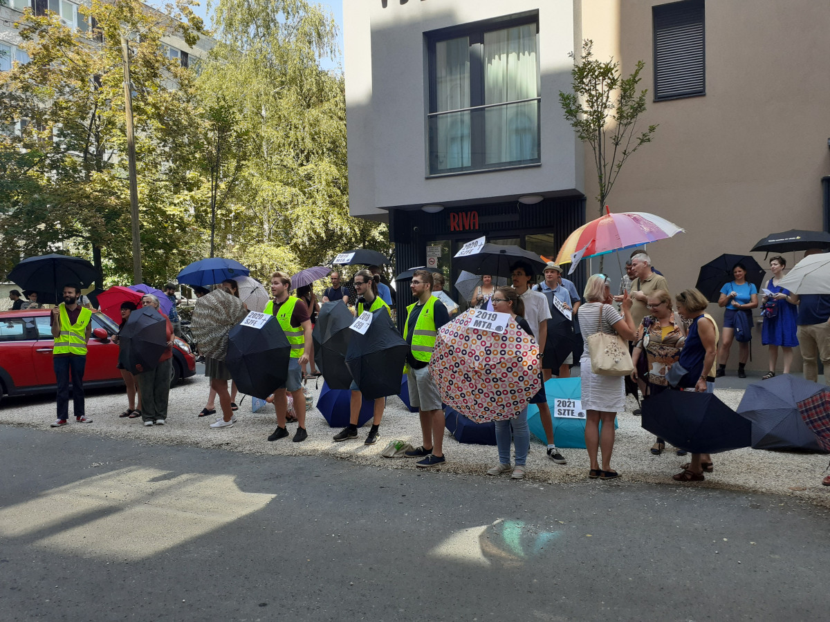 A Momentum képviselője átadott egy esernyőt Palkovics Lászlónak „az elmúlt évek legnagyobb melléfogásaival”. Rajta volt például a Szegedi Tudományegyetem alapítványi átalakítása, vagy az MTA kutatóhálózatának karcsúsítása. – Ezek bonyolult döntések és a teljes képhez meg kell várni az eredményt – reagált a miszter.