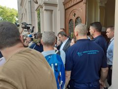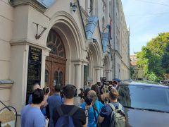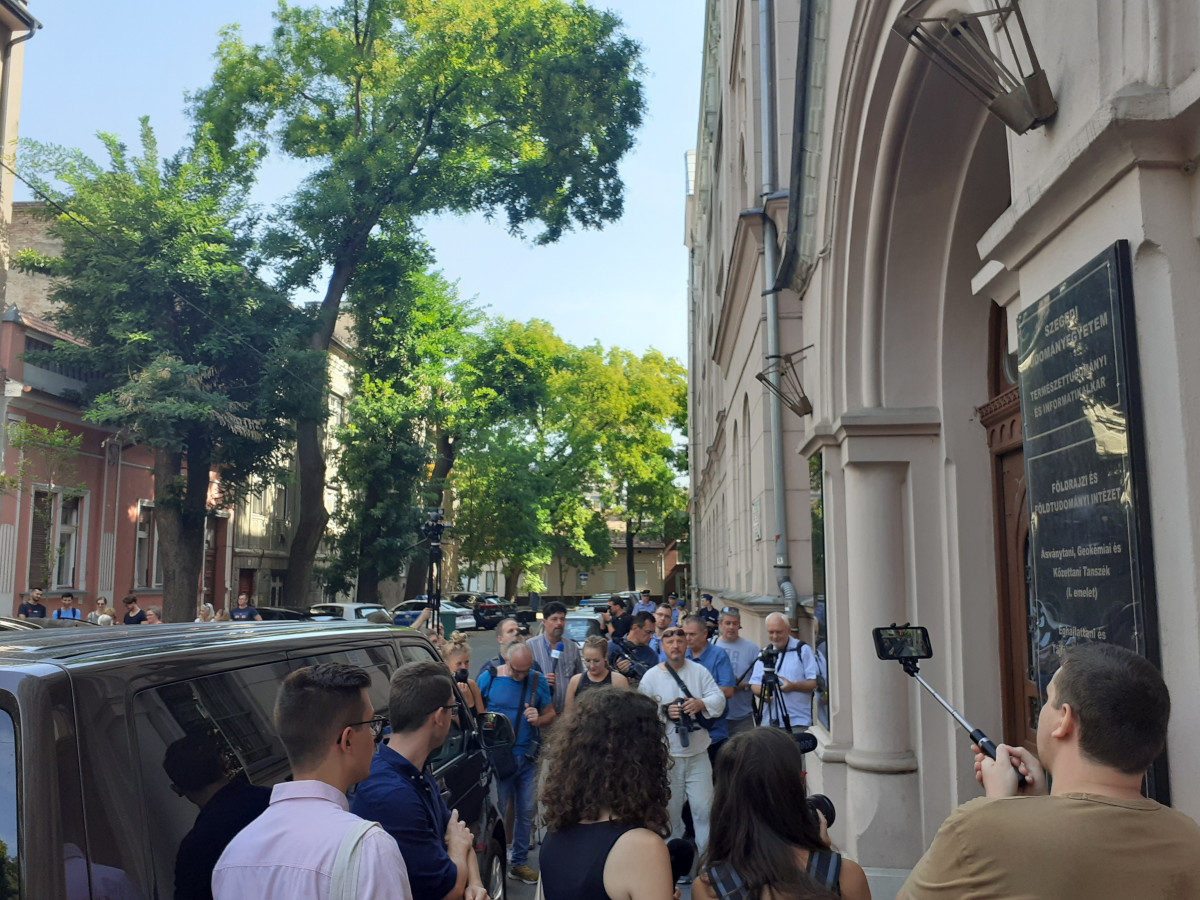 Közel húsz újságíró, fotós, operatőr és félszáz tüntető nézegette egymás a szegedi bölcsészkar előtt valamivel 11 óra után, az utóbbiak a helyükön voltak, a sajtó munkatársait nem engedték be az előadásra.