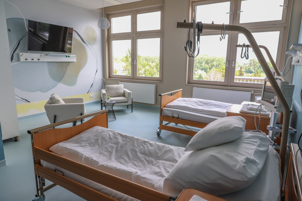 – Jelenleg több mint száz szakemberrel állunk szerződésben. Ennek köszönhetően nem kell elhagyniuk a már jól ismert műtőiket, asszisztenseiket, kollégáikat, hanem rajtunk keresztül, teljesen transzparens módon végezhetik gyógyító munkájukat. Ezt kívánja segíteni a fekvőbeteg osztály felújítása – ismertette az ügyvezető igazgató a megújuló fekvőbeteg osztály bejárásával egybekötött sajtótájékoztatón.