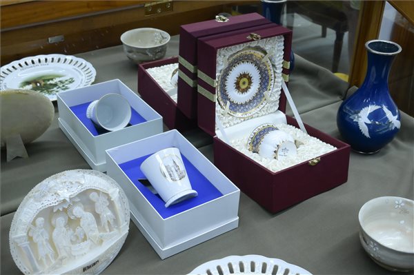 Fotó:  Emléktárgyak az árverésről tartott sajtótájékoztatón, amelyeket Áder János volt köztársasági elnök és felesége, Herczegh Anita, a Regőczi István Alapítvány a Koronavírus Árváiért kuratóriumának elnöke kapott elmúlt tíz évben a Nagyházi Galéria és Aukciósházban 2022. szeptember 7-én. Jótékonysági árverést rendez a koronavírus árváinak megsegítésére a Regőczi Alapítvány október 5-én a budapesti Nagyházi Galériában, ahol az elnöki pár külföldi útjain és hazai találkozóin kapott ajándékaira lehet licitálni. MTI/Koszticsák Szilárd