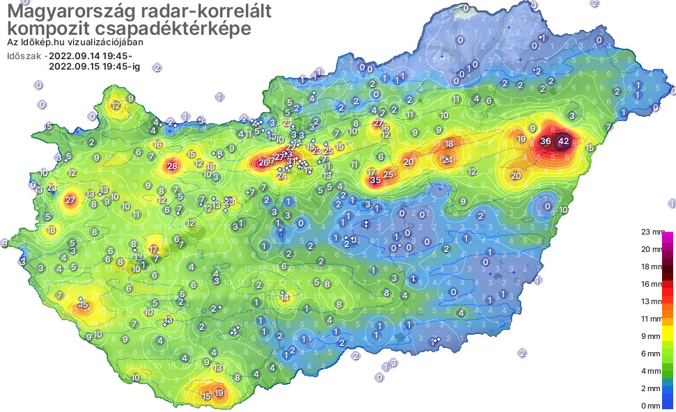 Szombaton jobbára erősen felhős vagy borult lesz az ég. Az ország délkeleti felén többfelé, máshol elszórtan valószínű eső, zápor, egy-egy zivatar. Az északnyugati, északi szél megélénkül, helyenként megerősödik. A legalacsonyabb éjszakai hőmérséklet 8 és 14, a legmagasabb nappali hőmérséklet 12 és 19 fok között várható.