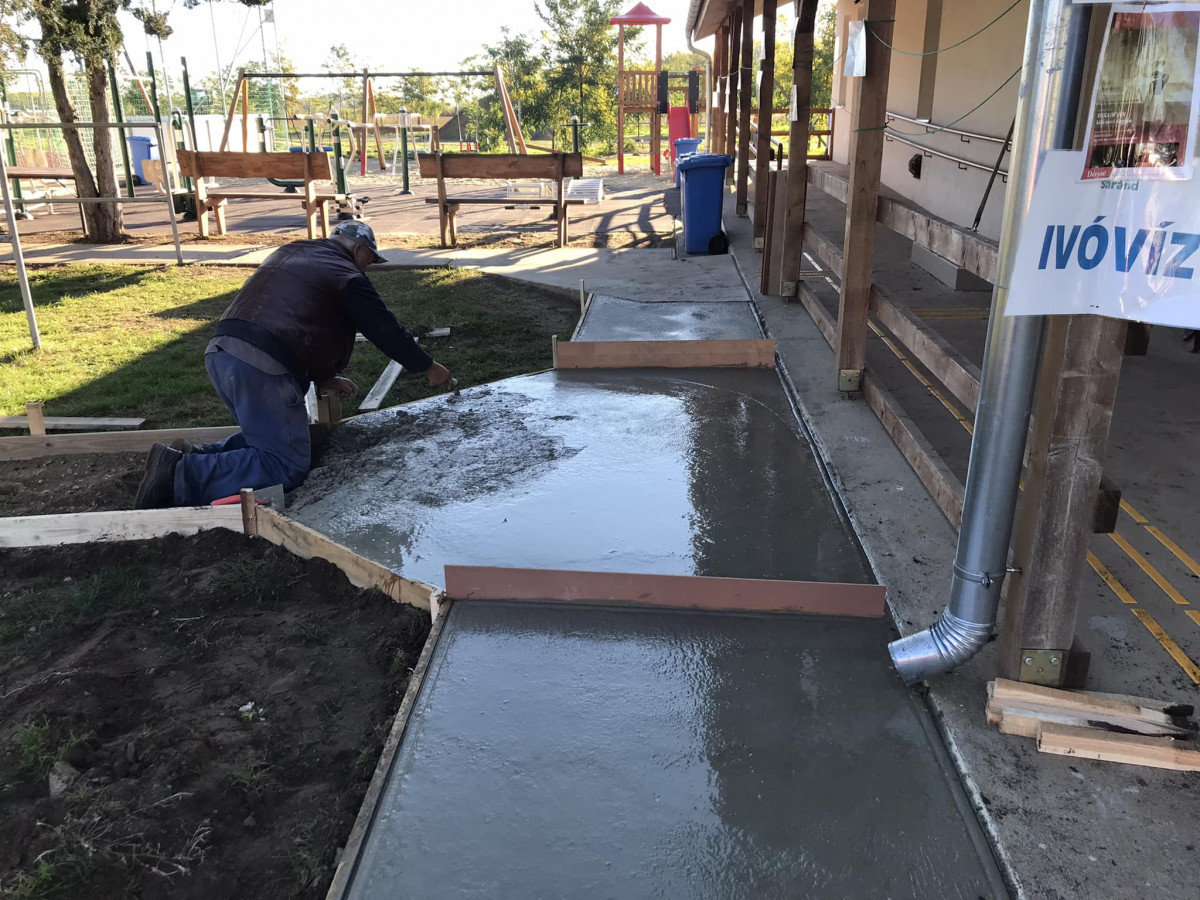 A csütörtöki állapot szerint a 4 nap alatt 350 négyzetméteres felület, 50 köbméter beton, 60 köbméter sóder, 15.000 kg cement fogyott.