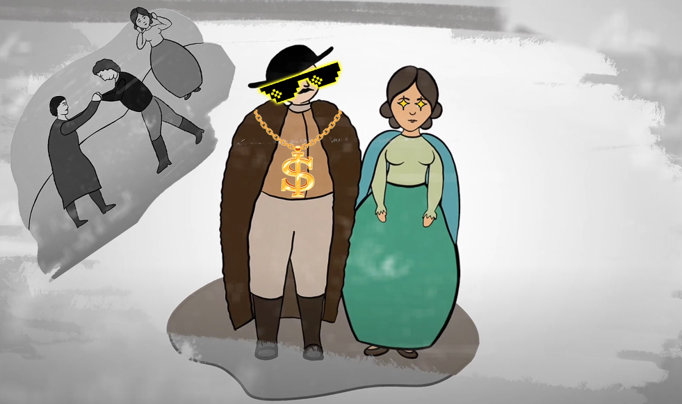 Íme egy másik mese, ahol a kor „sugar daddy”-jei is előkerülnek pár másodperc erejéig, amikor hiába párbajoztak a fiatalurak a hölgy kegyéért, az végül egy gazdag vén magánzót boldogított a kezével.