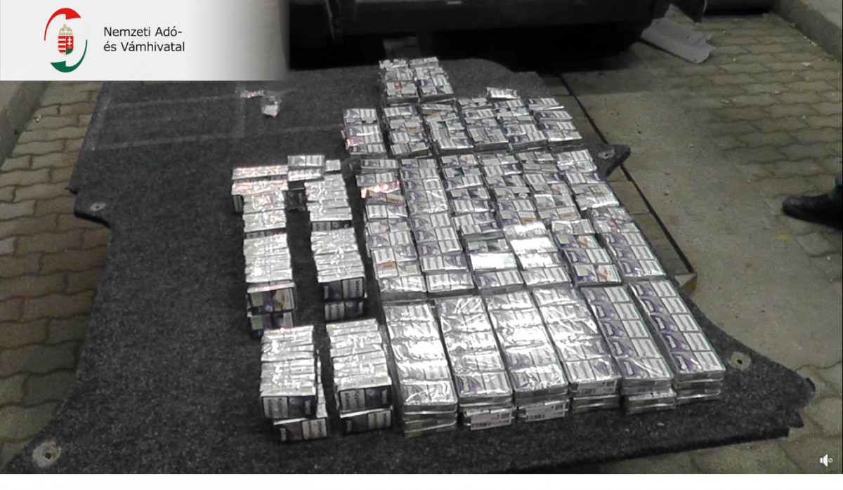 Az ellenőrzésen azonban Ella, a cigarettakereső kutya az autó több pontján is jelzett. A hátsó ülések alatt, a tűzfalnál és az A oszlopoknál házilag átalakított rejtekhelyekről csaknem 1500 doboz adózatlan dohány került elő.