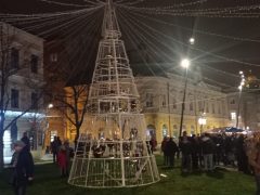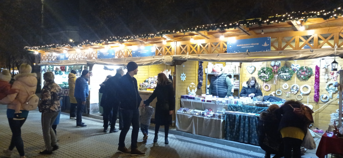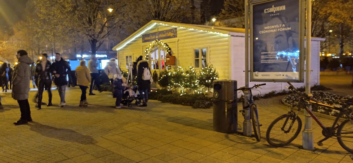 A Dósa nádor téren felállított színpadnál koncerteket hallgathattunk, míg az adventi kuckónál kialakított mesebeli kis házikóban legtöbbször ki is lehetett tenni megtelt a táblát. A kuckóban szuvenír gyanánt ingyen készíthetünk kandalló és a karácsonyfa melletti fotót szeretteinkkel.