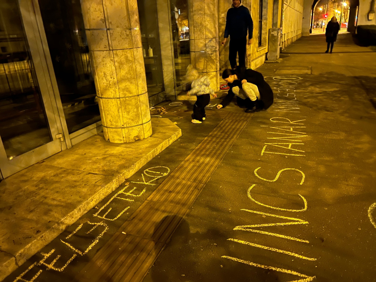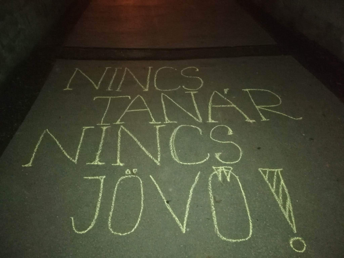 De nem csak a közösségi oldalon aktívak, több tucat szegedi iskola elé rajzoltak krétával feliratokat vasárnapról hétfőre virradóra. Sok szerencséjük nem volt, mert jó részüket elmosta az eső, de mindenképpen mutatja a szervezettséget. Így üzentek, hogy nem normális az, ami ma az oktatásban zajlik Magyarországon.